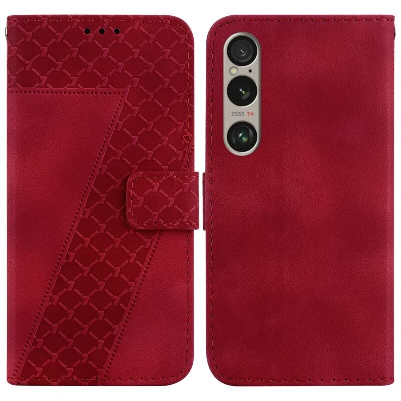 Για Sony Xperia 1 VI 7-σχήμα ανάγλυφη δερμάτινη θήκη τηλεφώνου (κόκκινο)
