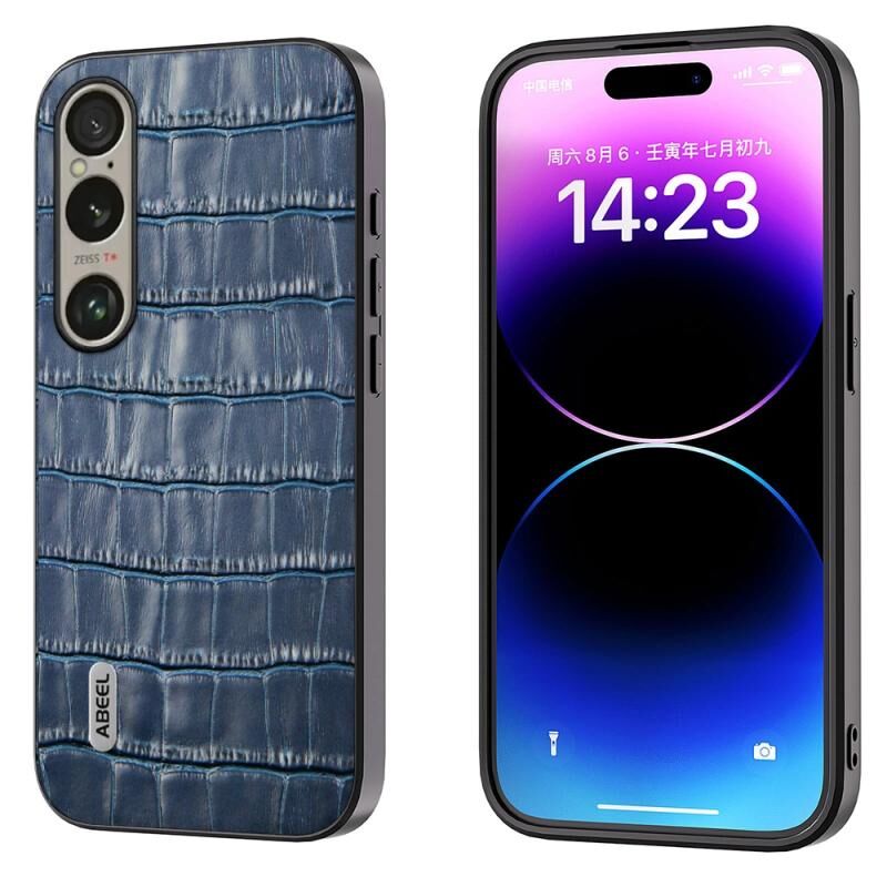 Θήκη τηλεφώνου από γνήσιο δέρμα με υφή κροκόδειλου για Sony Xperia 1 VI ABEEL (Πράσινο)