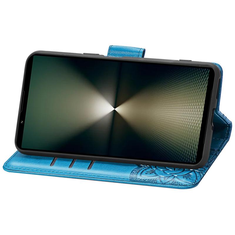For Sony Xperia 1 VI Butterfly Love Flower Embossed Leather Phone Case(Blue)