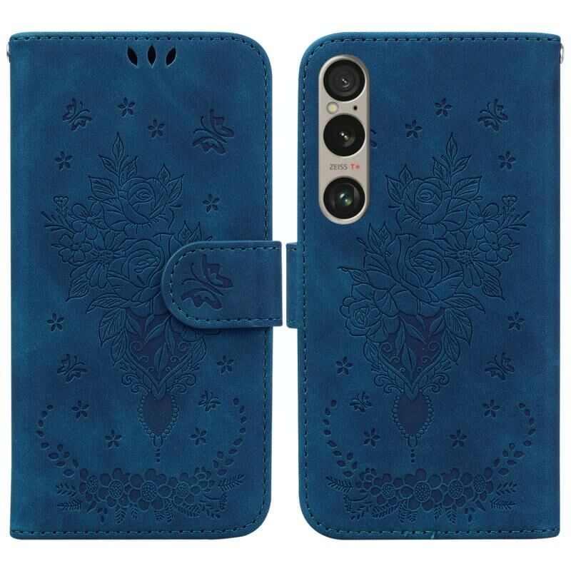Για Sony Xperia 1 VI Πεταλούδα Rose ανάγλυφη δερμάτινη θήκη τηλεφώνου (μπλε)