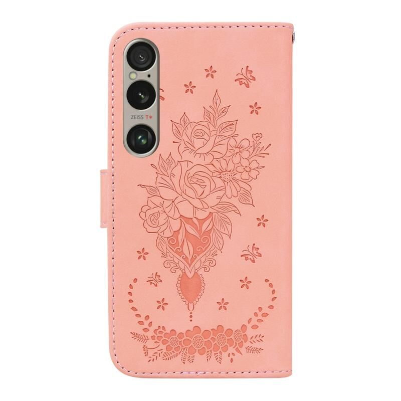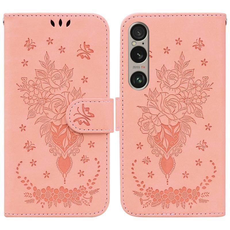 Για Sony Xperia 1 VI Πεταλούδα Rose ανάγλυφη δερμάτινη θήκη τηλεφώνου (ροζ)