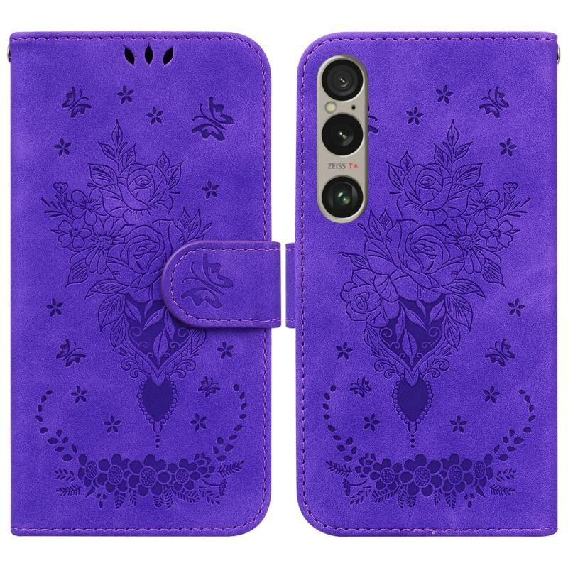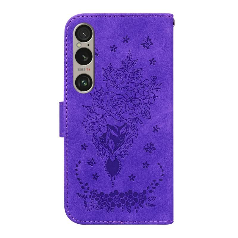 Για Sony Xperia 1 VI Πεταλούδα Rose ανάγλυφη δερμάτινη θήκη τηλεφώνου (μωβ)