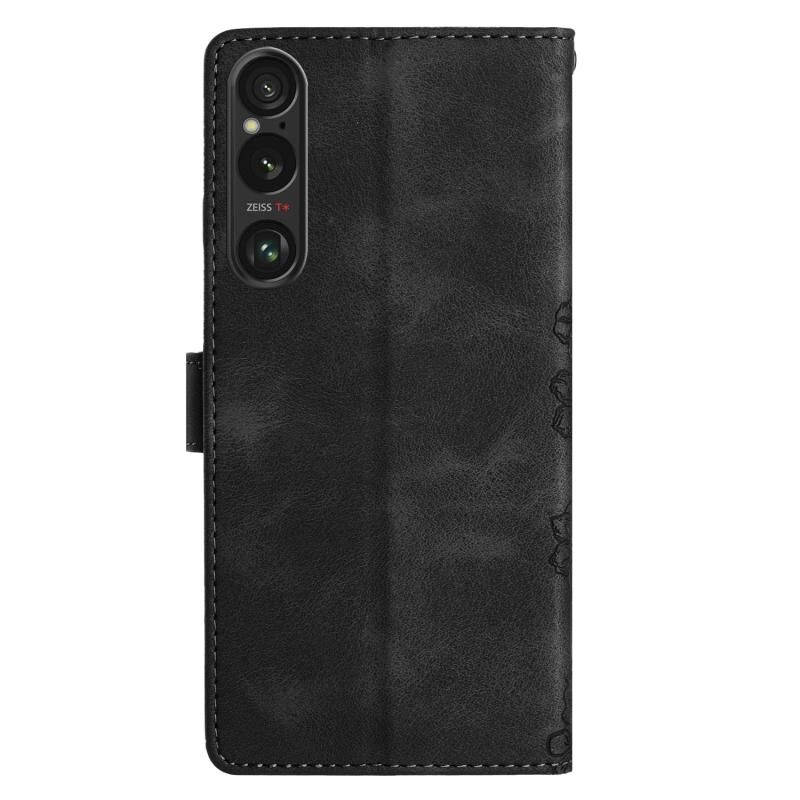 Θήκη τηλεφώνου για Sony Xperia 1 VI Cherry Blossom Butterfly Skin Feel Embossed PU (Μωβ)