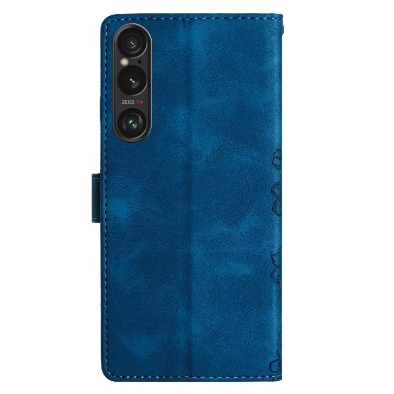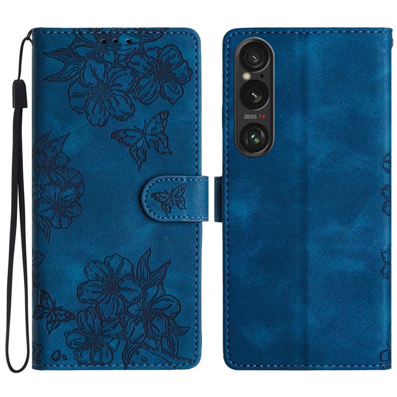 For Sony Xperia 1 VI Cherry Blossom Butterfly Skin Feel Embossed PU Phone Case(Blue)