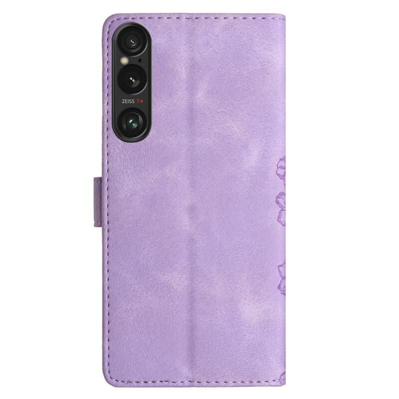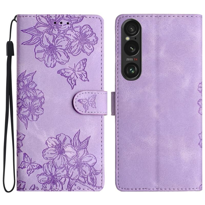 Θήκη τηλεφώνου για Sony Xperia 1 VI Cherry Blossom Butterfly Skin Feel Embossed PU (Μωβ)