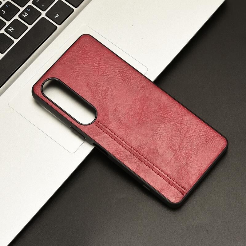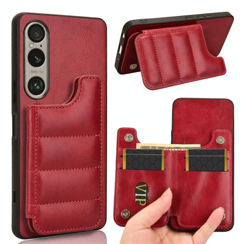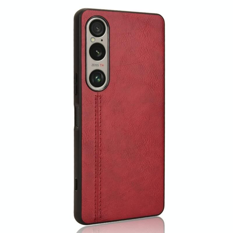 Για Sony Xperia 1 VI Αγελάδα μοτίβο ραπτικής κάρτα τσάντα υπόθεση τηλεφώνου (κόκκινο)