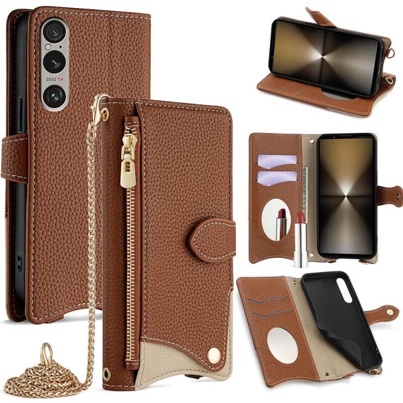 For Sony Xperia 1 VI Crossbody Chain Fishtail Litchi Leather Phone Case(Brown)