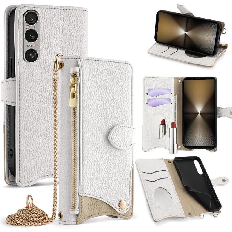 For Sony Xperia 1 VI Crossbody Chain Fishtail Litchi Leather Phone Case(White)