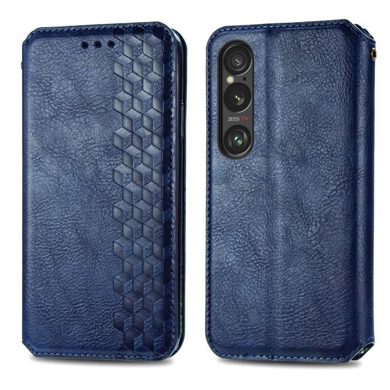Για το Sony Xperia 1 VI Cubic Grid Pressed μαγνητική δερμάτινη θήκη τηλεφώνου (μπλε)