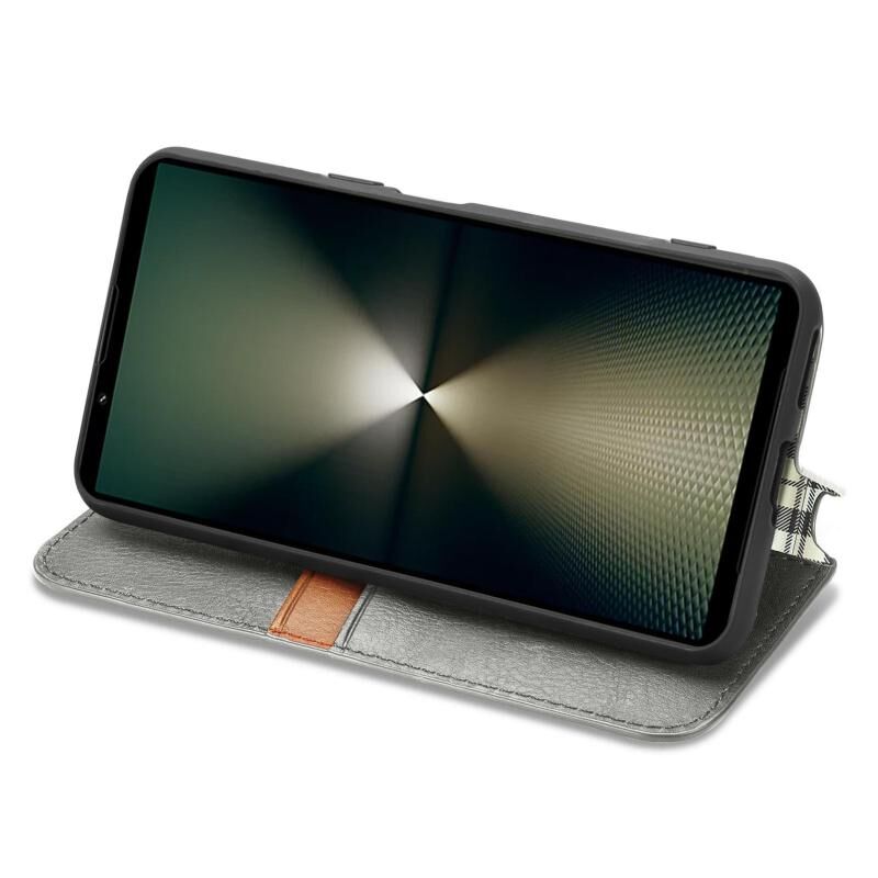 Για Sony Xperia 1 VI Cubic Grid Pressed μαγνητική δερμάτινη θήκη τηλεφώνου (γκρι)