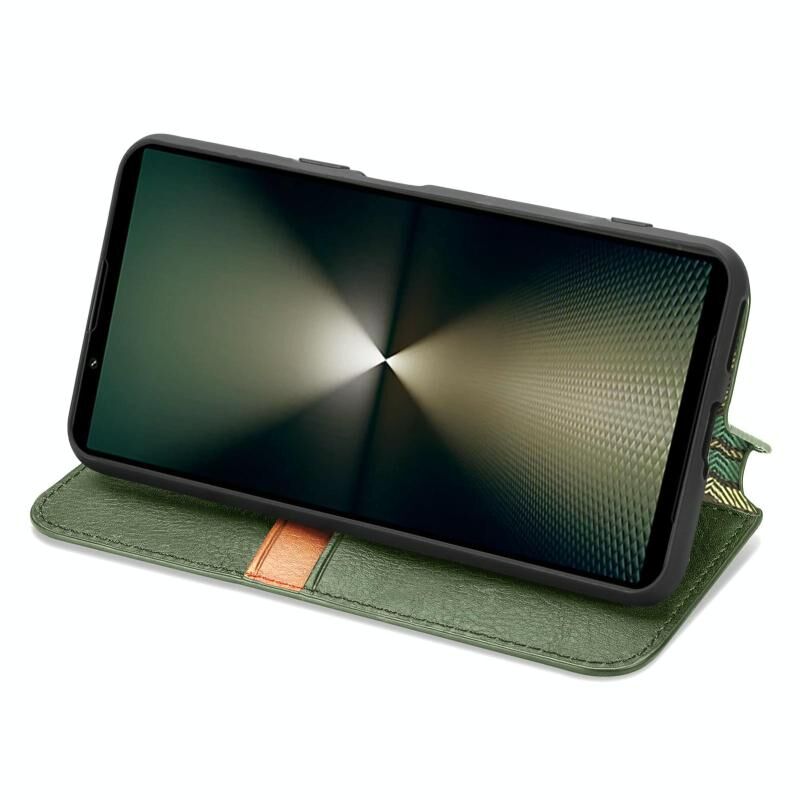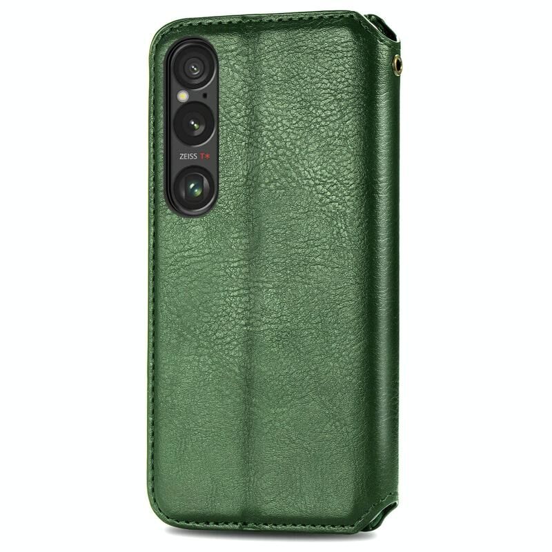 Για το Sony Xperia 1 VI Cubic Grid Pressed μαγνητική δερμάτινη θήκη τηλεφώνου (πράσινο)