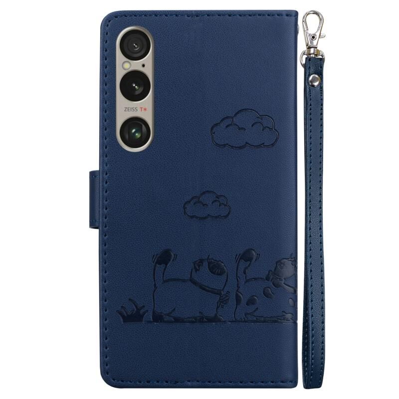 Θήκη τηλεφώνου από δέρμα με τεχνολογία RFID για Sony Xperia 1 VI (Πράσινη) με χαριτωμένες γάτες. (Μπλε)