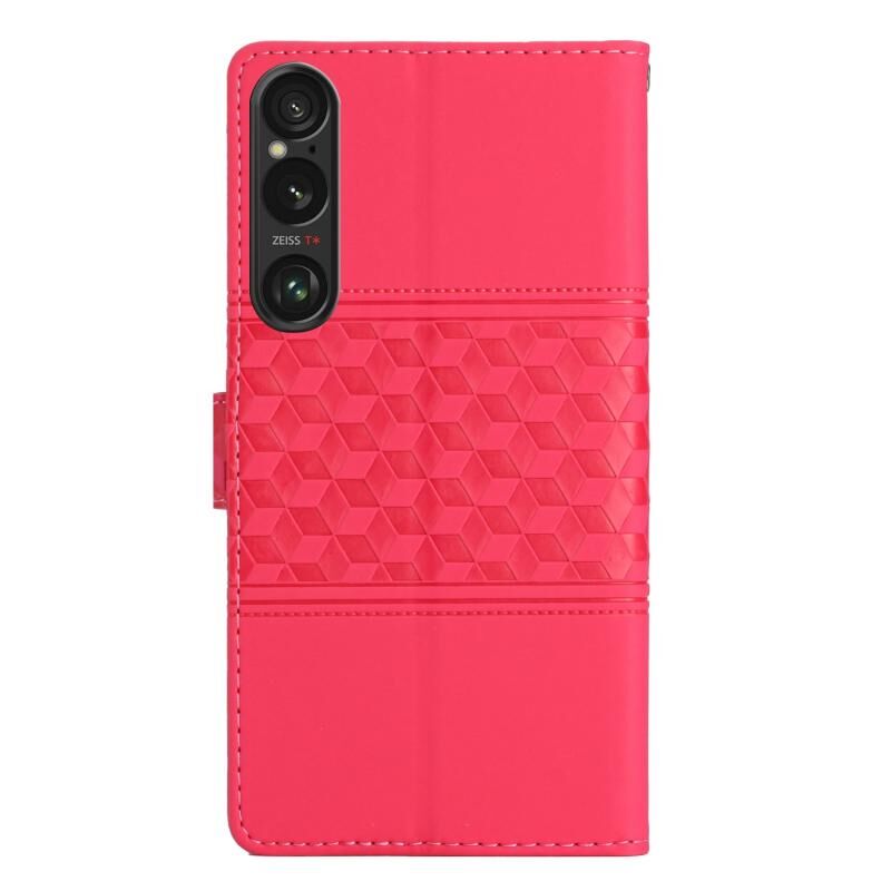 Για Sony Xperia 1 VI Diamond ανάγλυφο δέρμα αίσθηση δέρμα τηλέφωνο υπόθεση (κόκκινο)
