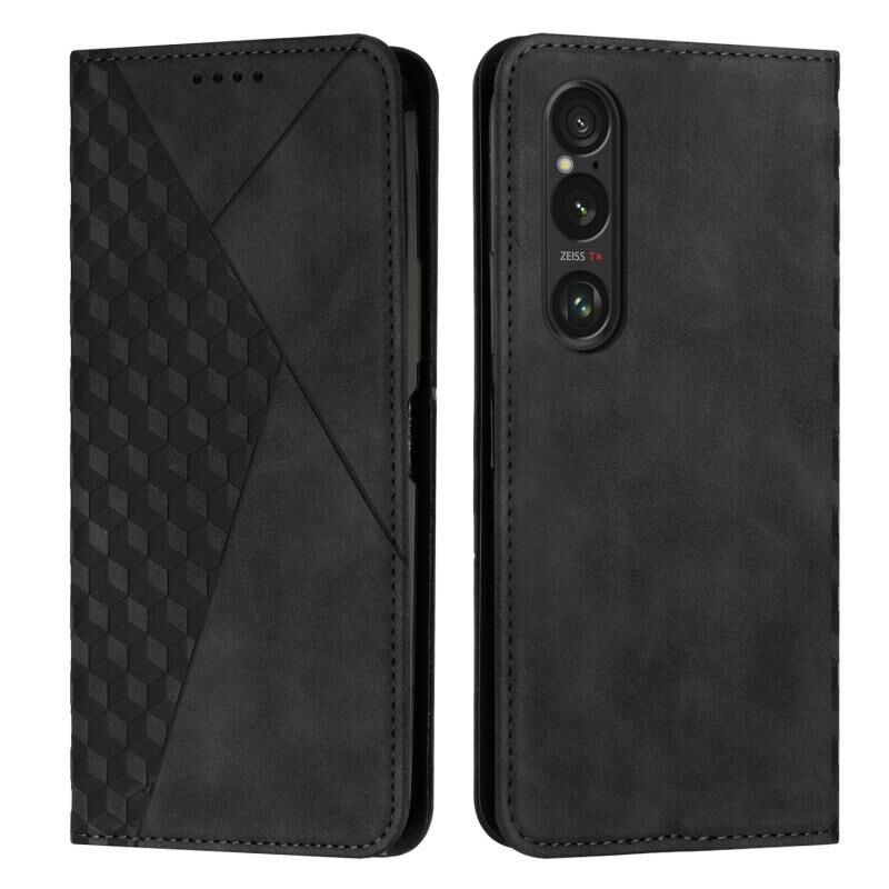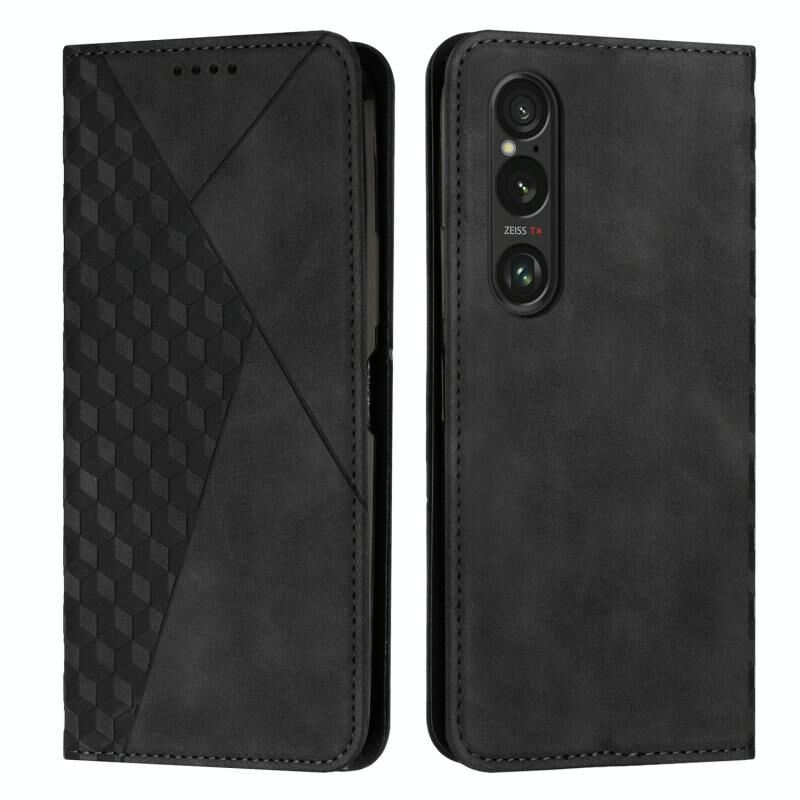 Για το Sony Xperia 1 VI Diamond Splicing Skin Feel μαγνητική δερμάτινη θήκη τηλεφώνου (μαύρο)