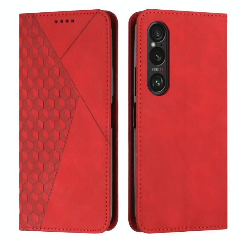 Για το Sony Xperia 1 VI Diamond Splicing δέρμα αίσθηση μαγνητική δερμάτινη θήκη τηλεφώνου (κόκκινο)