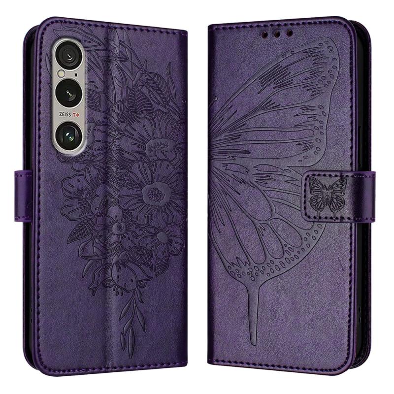 For Sony Xperia 1 VI Embossed Butterfly Leather Phone Case(Dark Purple)