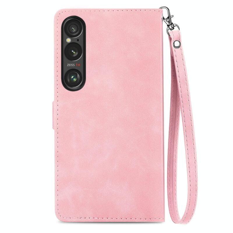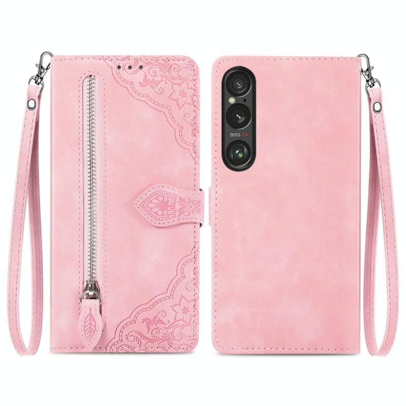 Για Sony Xperia 1 VI ανάγλυφο λουλούδι φερμουάρ δερμάτινη θήκη τηλεφώνου (ροζ)