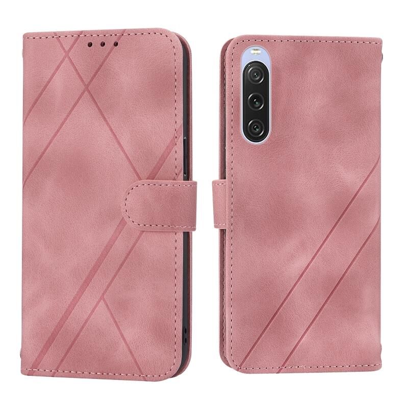 Για Sony Xperia 1 VI Ανάγλυφη γραμμή δερμάτινη θήκη τηλεφώνου με κορδόνι (ροζ)
