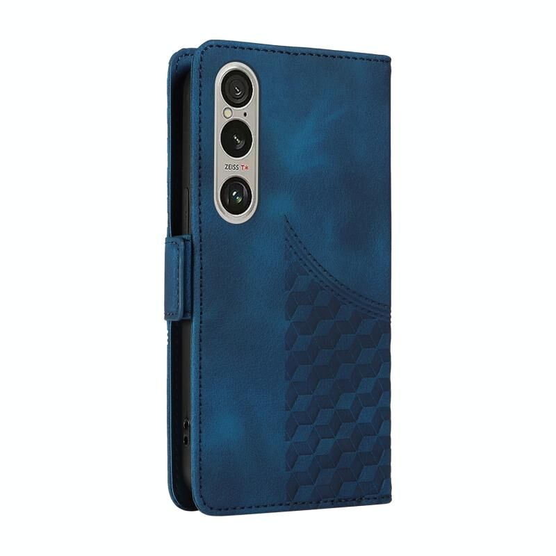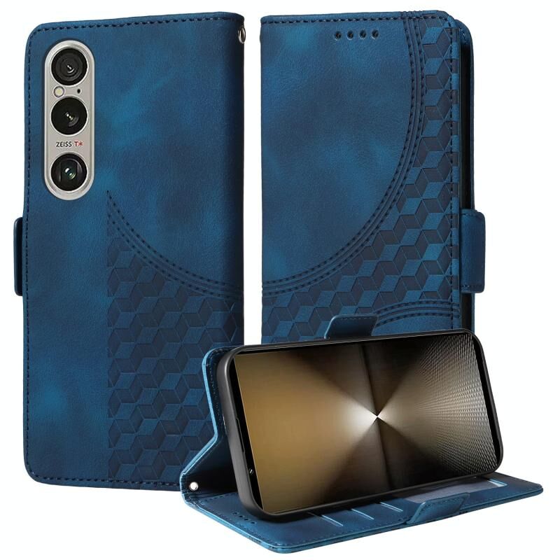 Για το Sony Xperia 1 VI Ανάγλυφο ρόμβος αστερόεσσα δερμάτινη θήκη τηλεφώνου (μπλε)