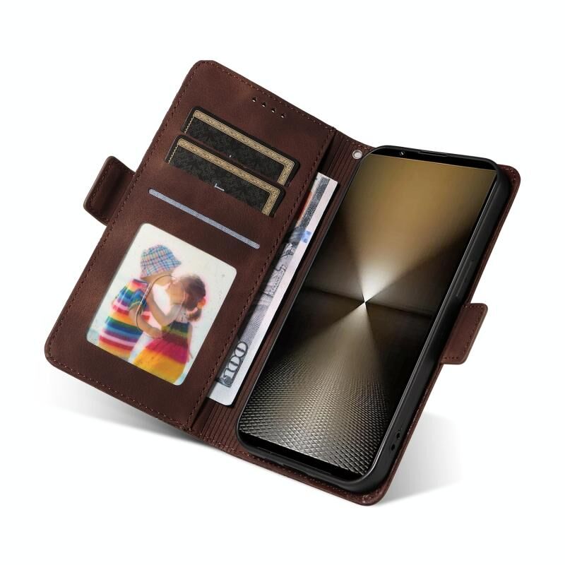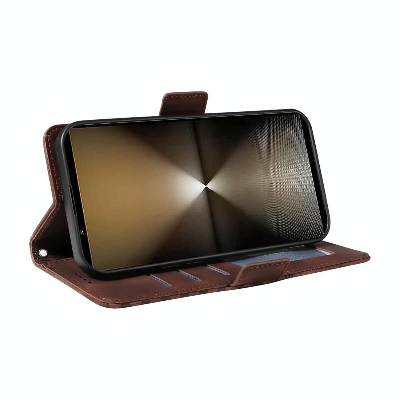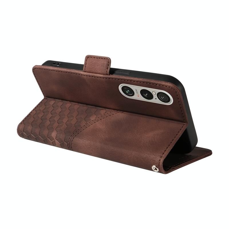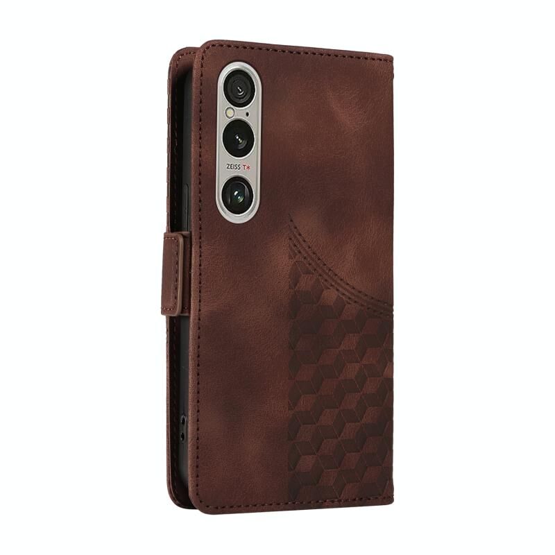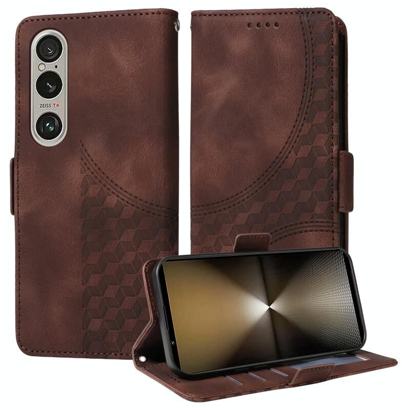 Για το Sony Xperia 1 VI Ανάγλυφο ρόμβος αστερόεσσα δερμάτινη θήκη τηλεφώνου (καφέ)