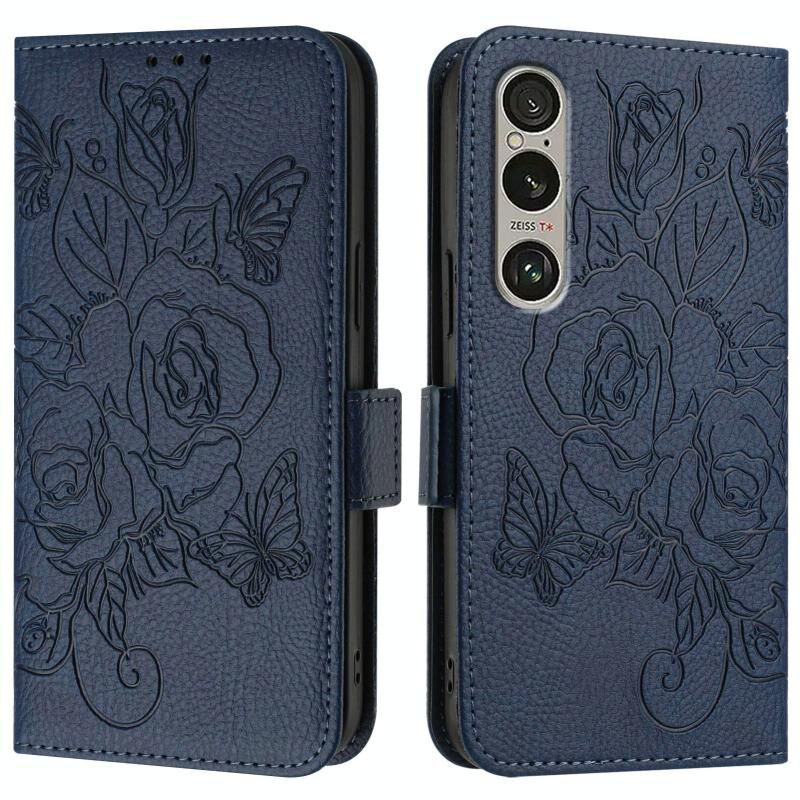 Για Sony Xperia 1 VI ανάγλυφο Rose RFID Anti-theft δερμάτινη θήκη τηλεφώνου (σκούρο μπλε)