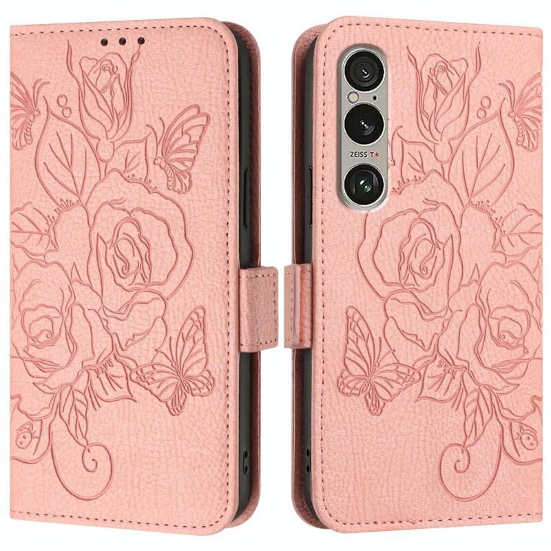 Για Sony Xperia 1 VI ανάγλυφο Rose RFID Anti-theft δερμάτινη θήκη τηλεφώνου (ροζ)