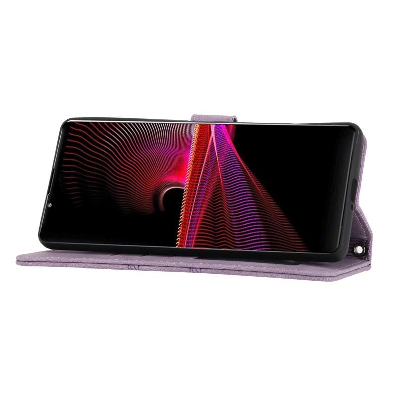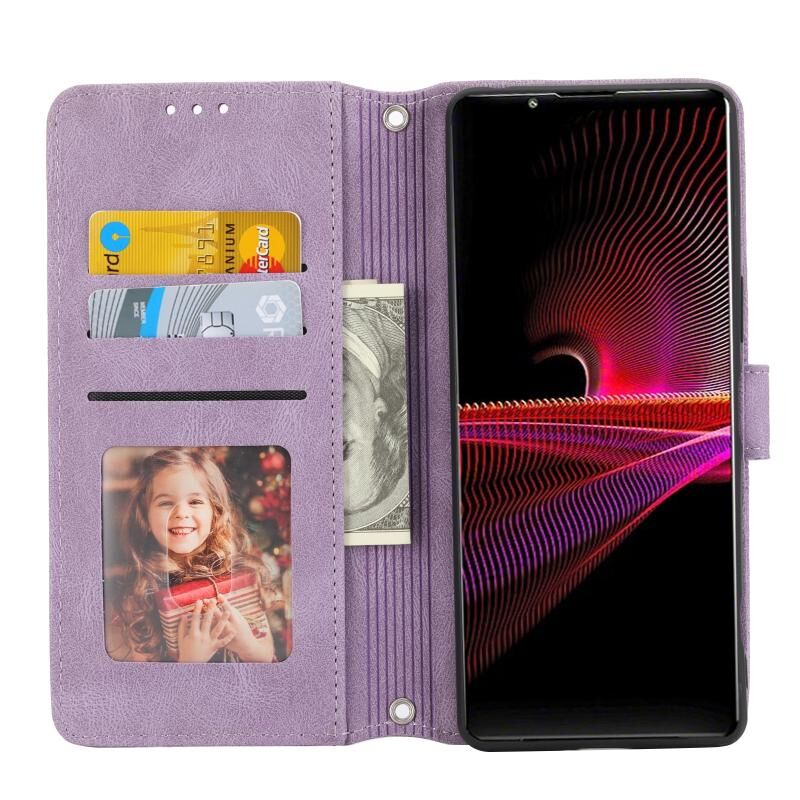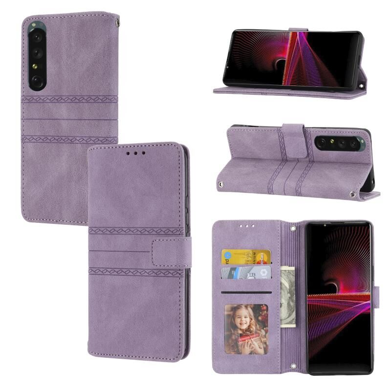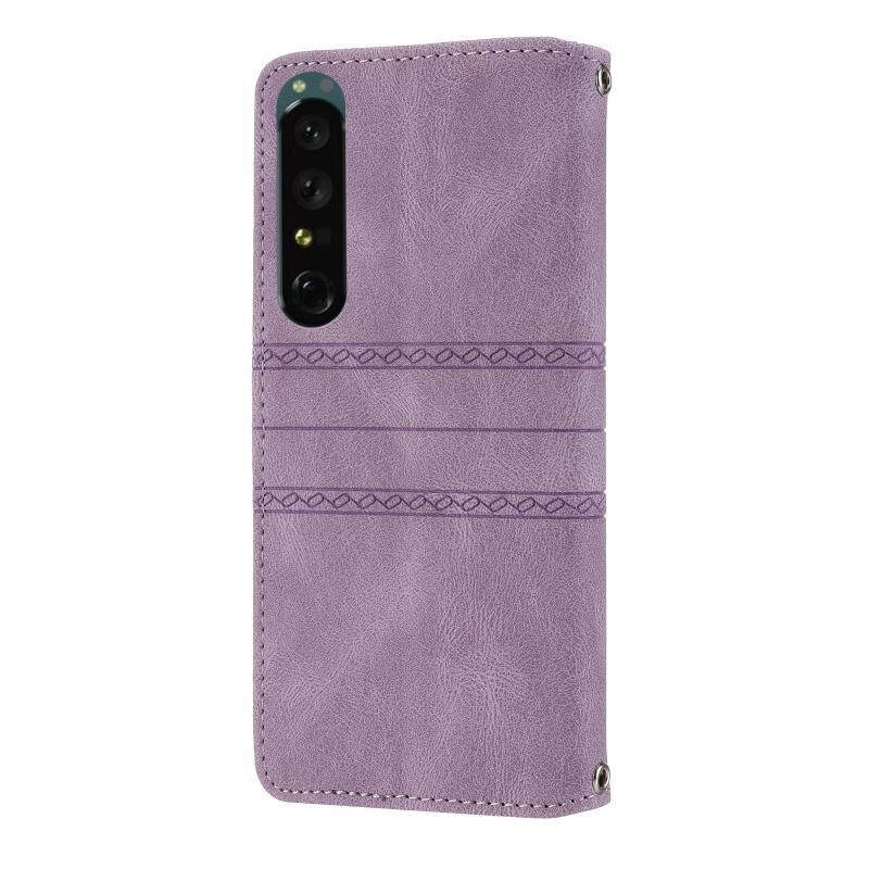 Για το Sony Xperia 1 VI ανάγλυφο ρίγες δέρμα δέρμα αίσθηση τηλέφωνο υπόθεση (ανοιχτό μοβ)