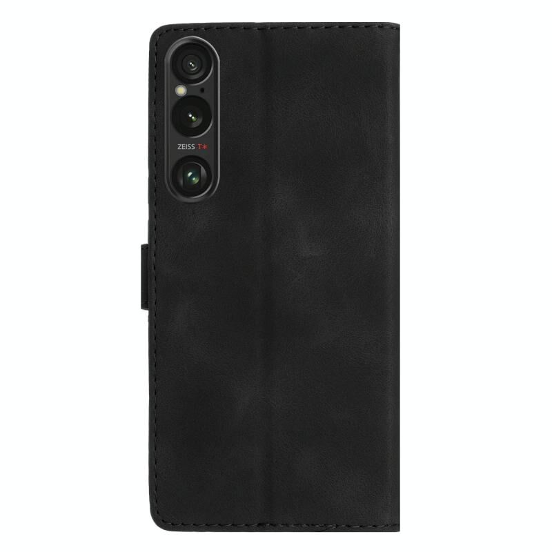 Για Sony Xperia 1 VI λουλούδι πεταλούδα ανάγλυφο μοτίβο δερμάτινη θήκη τηλεφώνου (μαύρο)