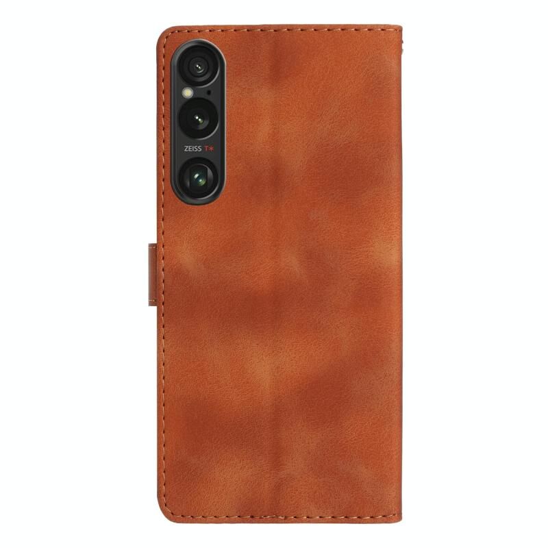 Για Sony Xperia 1 VI λουλούδι πεταλούδα ανάγλυφο μοτίβο δερμάτινη θήκη τηλεφώνου (καφέ)