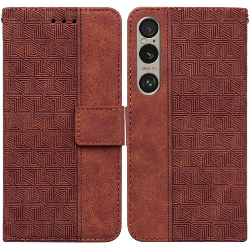 Για Sony Xperia 1 VI Γεωμετρική ανάγλυφη δερμάτινη θήκη τηλεφώνου (καφέ)