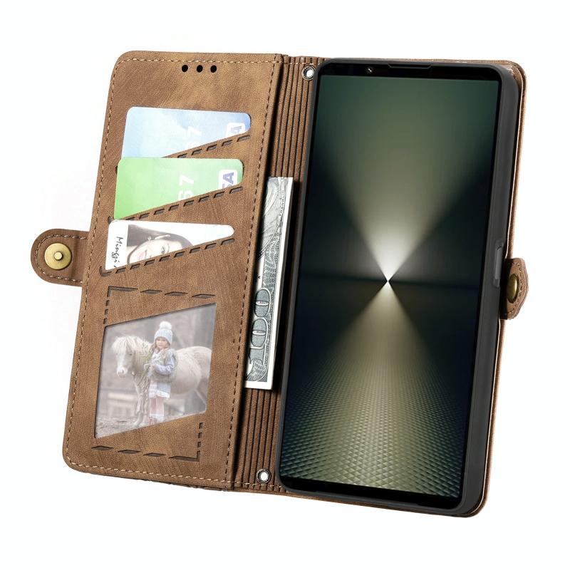 Θήκη για Sony Xperia 1 VI, Δερμάτινη με Φερμουάρ και Αγκράφα (Καφέ)
