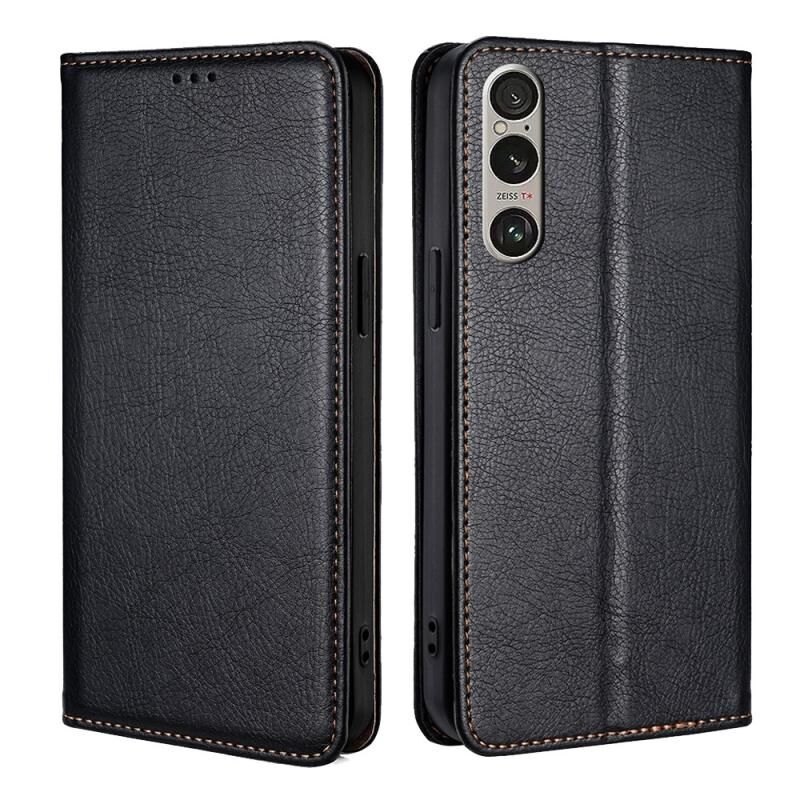 Για Sony Xperia 1 VI Gloss Oil Solid Color Μαγνητική δερμάτινη θήκη τηλεφώνου (μαύρο)