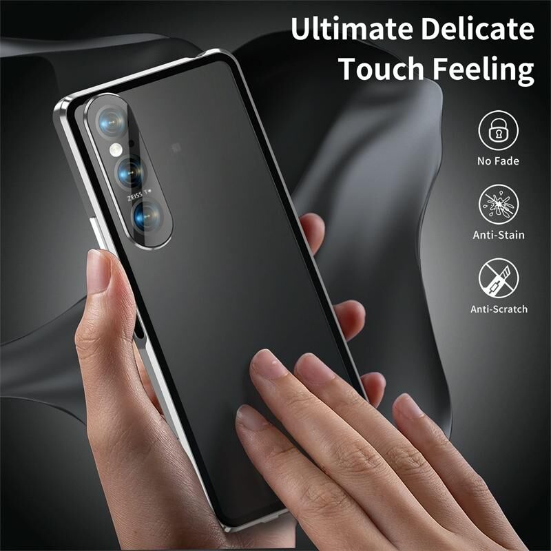 Για Sony Xperia 1 VI HD Μαγνητική θήκη τηλεφώνου από μέταλλο μετριασμένο γυαλί(Ασημί)