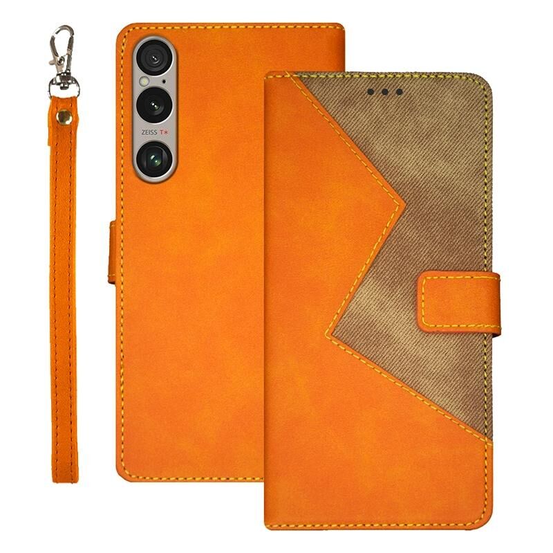 For Sony Xperia 1 VI idewei Two-color Splicing Leather Phone Case(Orange) (idewei)