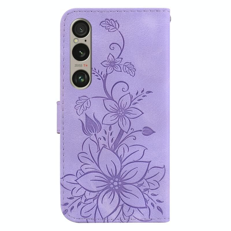 Για Sony Xperia 1 VI Lily ανάγλυφη δερμάτινη θήκη τηλεφώνου (μωβ)