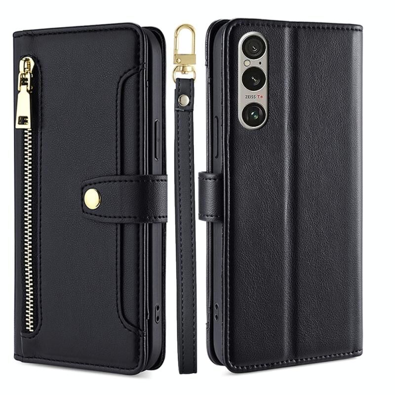 Για Sony Xperia 1 VI Lite Sheep Texture Cross-body φερμουάρ πορτοφόλι δερμάτινη θήκη τηλεφώνου (μαύρο)
