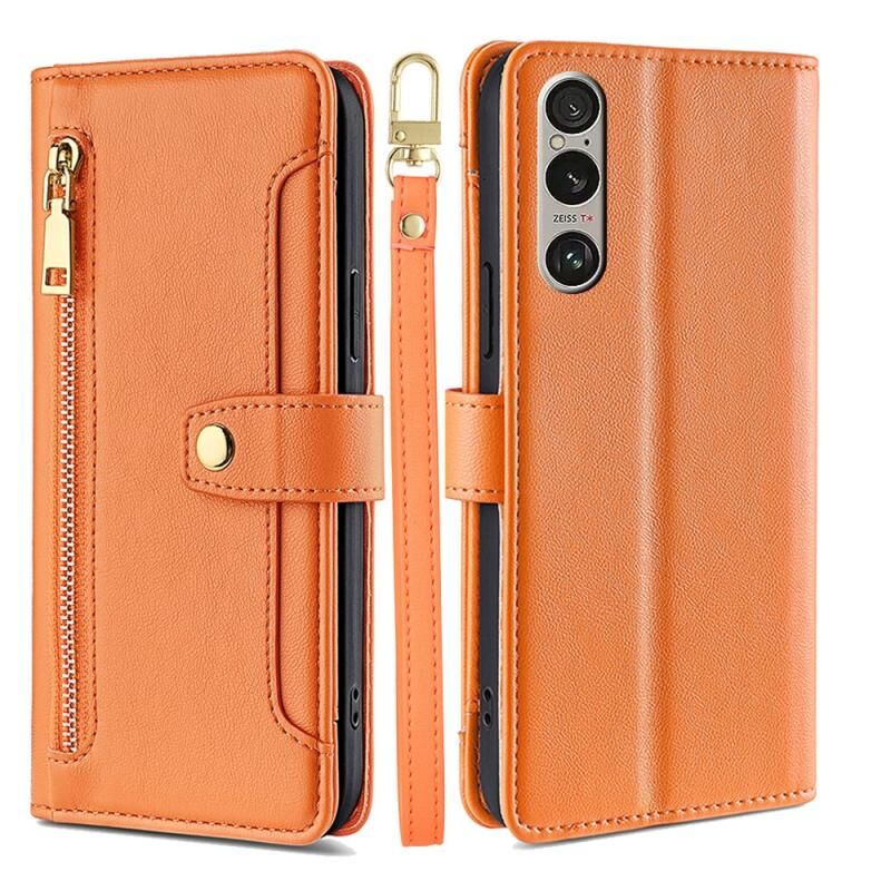 Για Sony Xperia 1 VI Lite Πρόβατο Υφή Cross-body φερμουάρ πορτοφόλι δερμάτινη θήκη τηλεφώνου (πορτοκαλί)