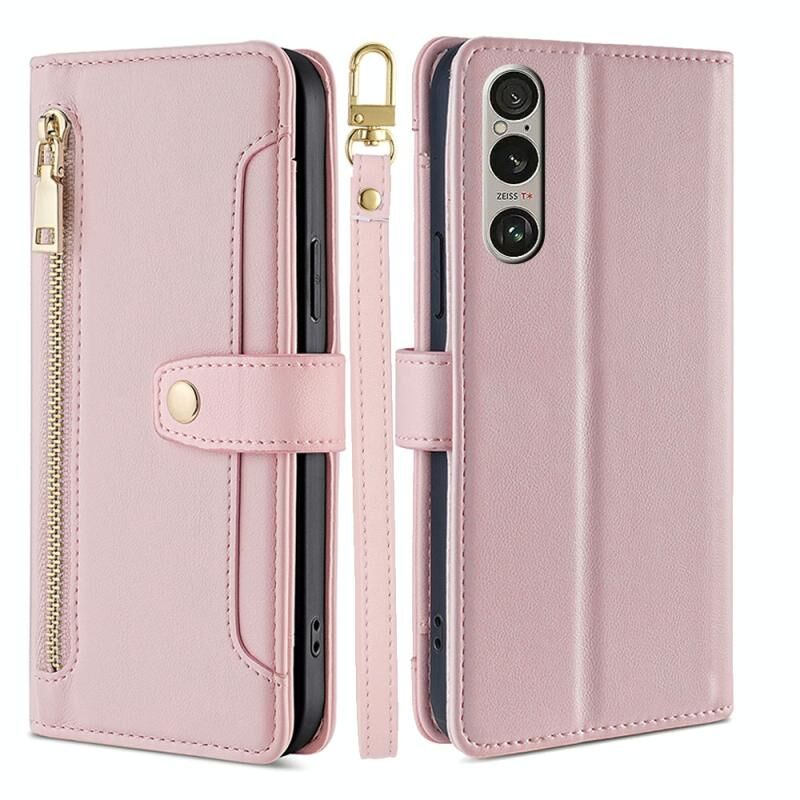 Για Sony Xperia 1 VI Lite Sheep Texture Cross-body φερμουάρ πορτοφόλι δερμάτινη θήκη τηλεφώνου (ροζ)