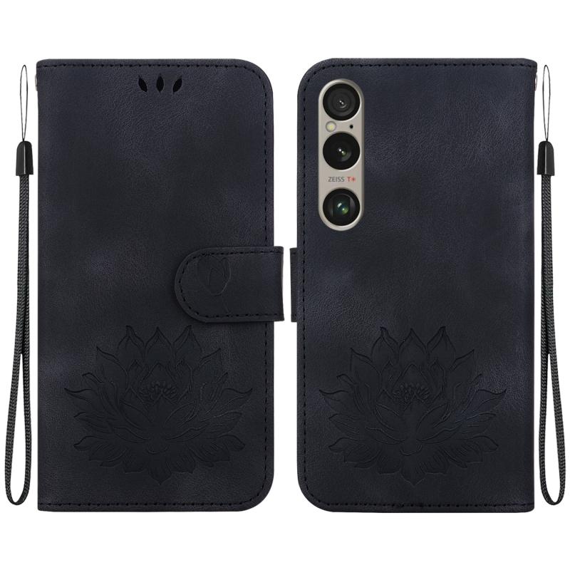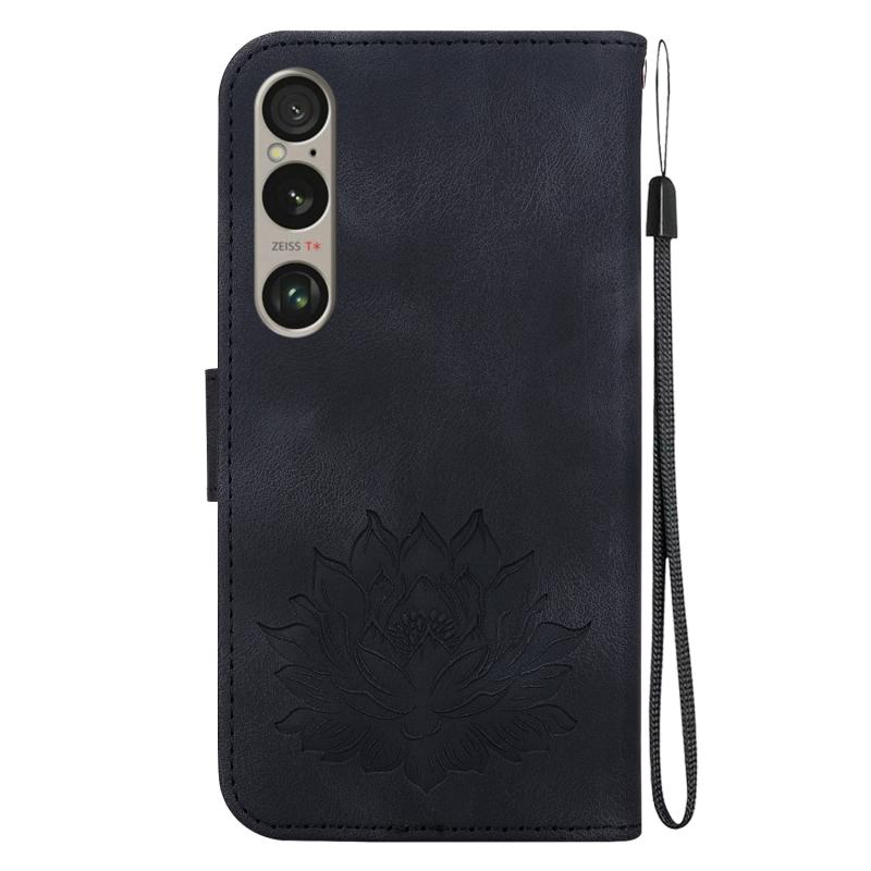 For Sony Xperia 1 VI Lotus Embossed Leather Phone Case(Black)