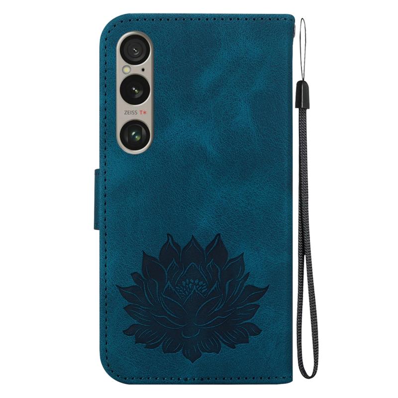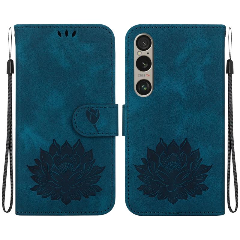 For Sony Xperia 1 VI Lotus Embossed Leather Phone Case(Dark Blue)