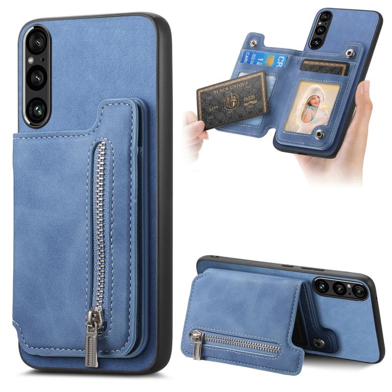 For Sony Xperia 1 VI Retro MagSafe Zipper Wallet Card Bag Back Phone Case(Blue)