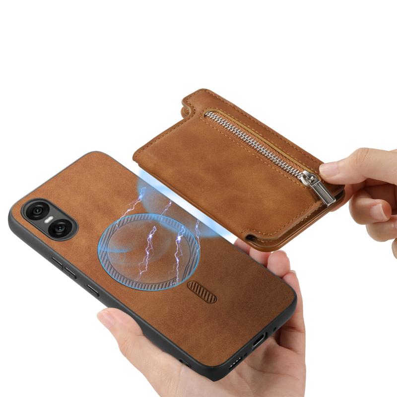 For Sony Xperia 1 VI Retro MagSafe Zipper Wallet Card Bag Back Phone Case(Brown)