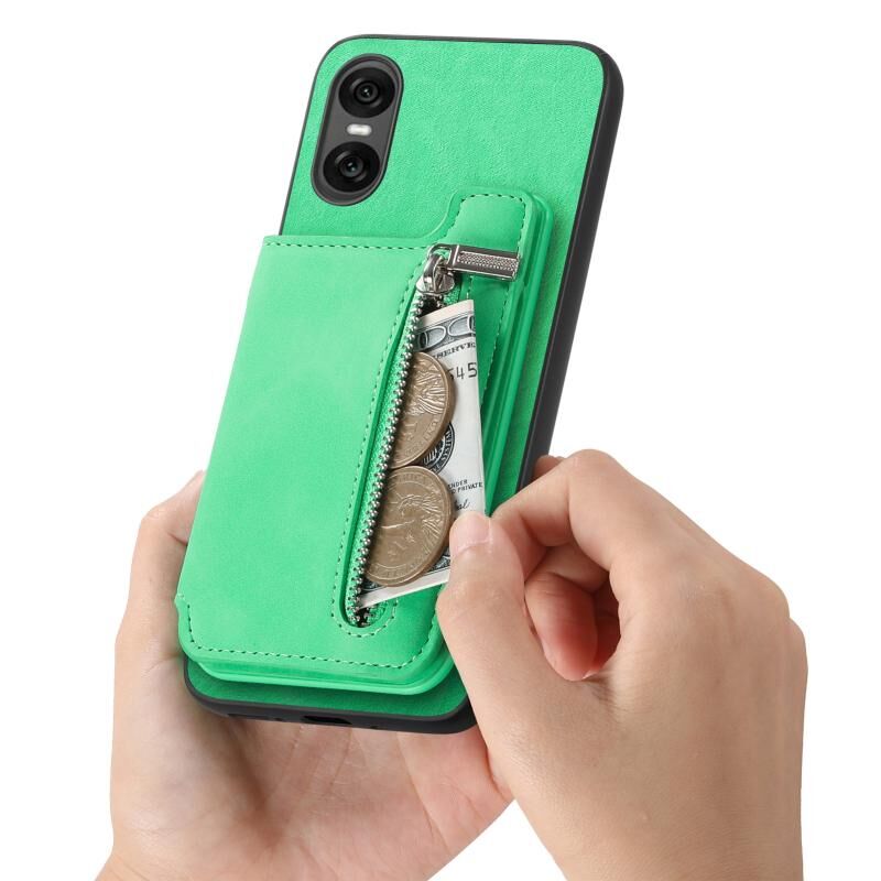 For Sony Xperia 1 VI Retro MagSafe Zipper Wallet Card Bag Back Phone Case(Green)