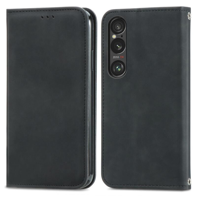 Για Sony Xperia 1 VI Retro δέρμα αίσθηση μαγνητική δερμάτινη θήκη τηλεφώνου (μαύρο)