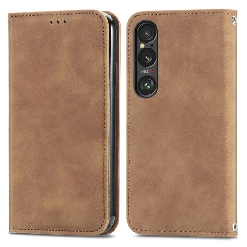 Για το Sony Xperia 1 VI Retro δέρμα αίσθηση μαγνητική δερμάτινη θήκη τηλεφώνου (καφέ)