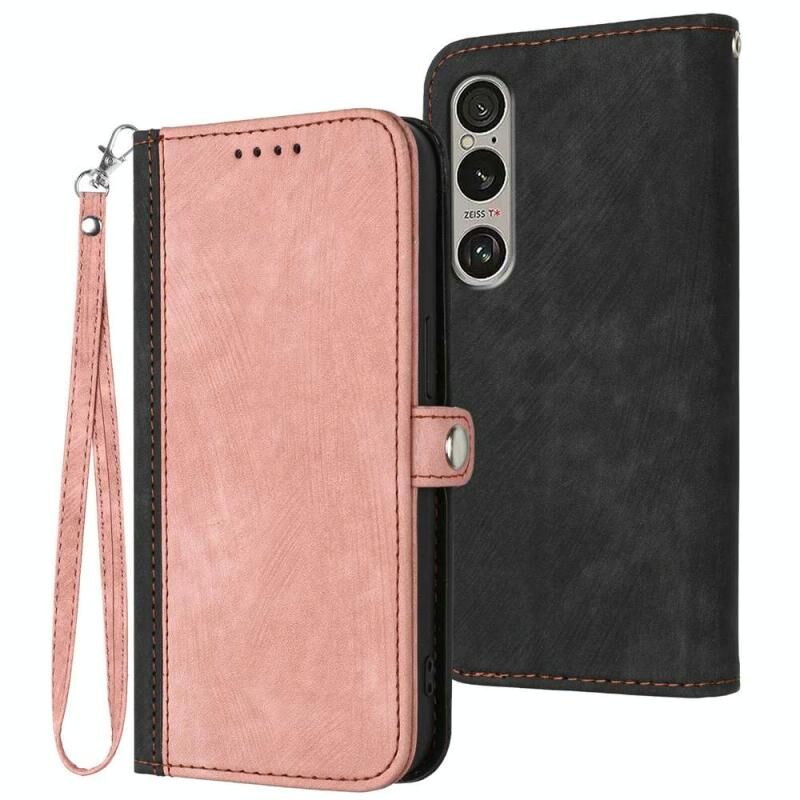 Για το Sony Xperia 1 VI Side Πόρπη διπλή πτυχή λουράκι χειρός δερμάτινη θήκη τηλεφώνου (ροζ)
