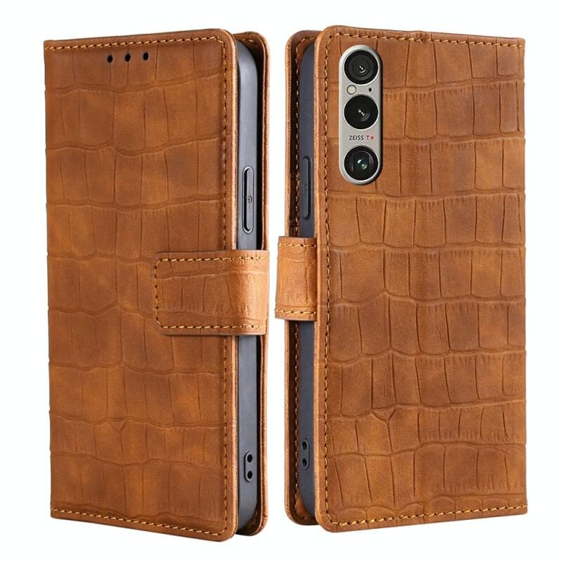 Θήκη τηλεφώνου δερμάτινη με μαγνητικό κούμπωμα και υφή κροκόδειλου για Sony Xperia 1 VI (Μαύρο)