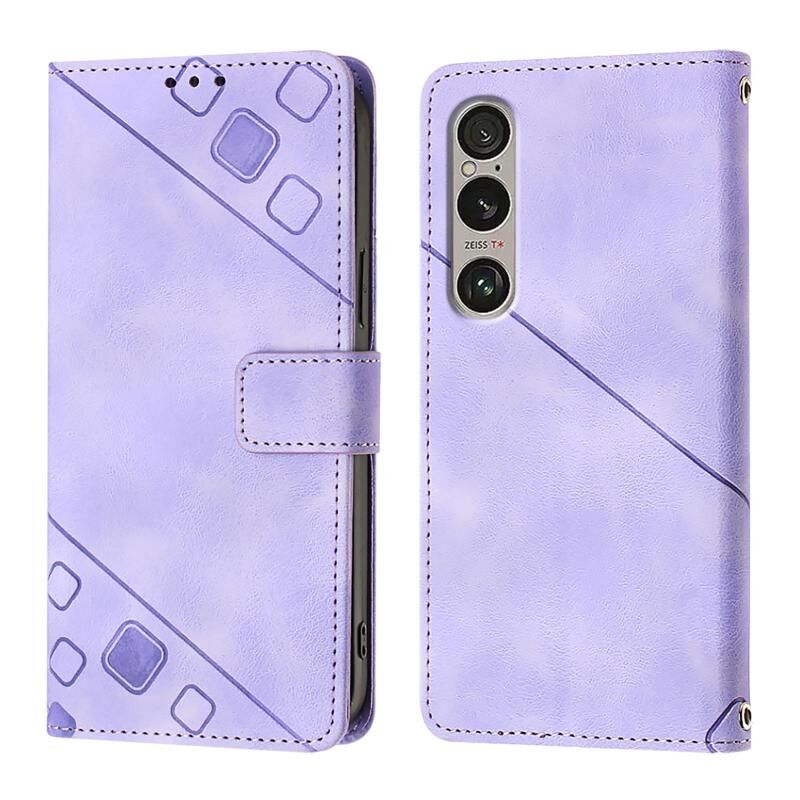 Για Sony Xperia 1 VI Skin-feel ανάγλυφη δερμάτινη θήκη τηλεφώνου (ανοιχτό μοβ)