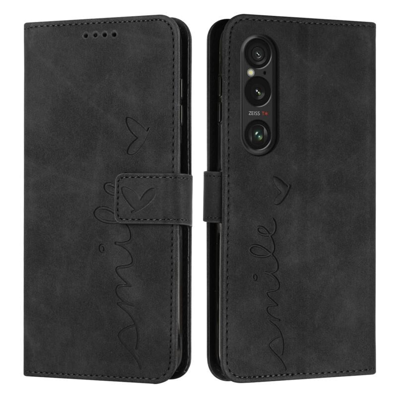 Για το Sony Xperia 1 VI Skin Feel Heart ανάγλυφη δερμάτινη θήκη τηλεφώνου με μακρύ κορδόνι (μαύρο)
