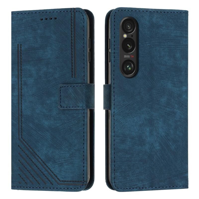 Για Sony Xperia 1 VI δέρμα αίσθηση λωρίδα μοτίβο δερμάτινη θήκη τηλεφώνου με κορδόνι (μπλε)
